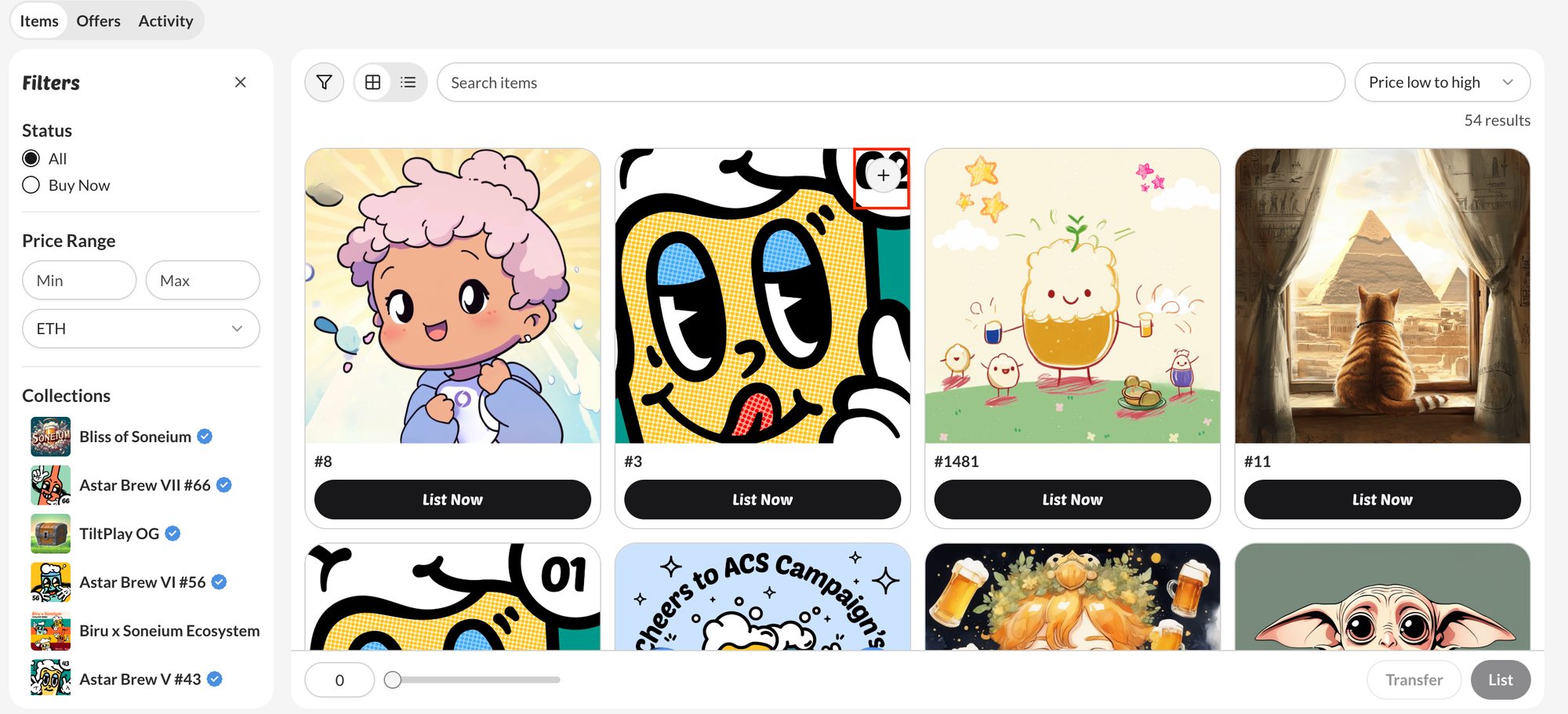 - Choose the NFTs you want to burn from your wallet, and click the + to select the NFTs you want to burn (up to 20 NFTs per transaction).